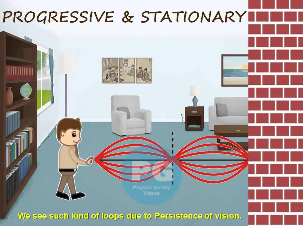 အင္း...ဘာသာျပန္ရတာလည္း ေတာ္ေတာ္ခြက်တယ္။တန္႔လႈိင္းဆိုလို႔ မလႈပ္တဲ့လႈိင္းႀကီးလို႔ထင္ေနအံုးမယ္။မဟုတ္ဖူးေနာ္... လႈိင္းဆိုကတည္းကလႈပ္ၿပီးသား။(လႈိင္းဆိုတာ movementတစ္ခု၊မေမ့နဲ႔)ဘယ္နဲ႔ေ႐ြ႕တယ္လည္းေျပာေသး၊တန္႔တယ္လည္းေျပာေသး၊ ေရွ႕မတိုးဖူးလို႔လဲေျပာေသးဘာႀကီးတံုး။ အဲ့လိုလႈိင္းမ်ိဳးအတြက္...အထင္ရွားဆံုးကေတာ့ ႀကိဳး/စပရိန္တစ္ခုခုကို တစ္ဖက္မွာတင္းေအာင္ခ်ည္၊ေနာက္တစ္ဖက္ကို (လက္နဲ႔ပဲ ျဖစ္ျဖစ္) ခတ္ဆတ္ဆတ္လႈပ္တဲ့အခါ(ဖတ္စာအုပ္ထဲမွာေတာ့ လွပ္စစ္ေခါင္းေလာင္းရဲ႕ေမာင္းတံမွာ ခ်ည္ၿပီးေမာင္းတံကိုလႈပ္ေစတာ)ျဖစ္သြားမယ့္လႈိင္းမ်ိဳးပဲ ။ဘာထူးလဲလို႔မင္းတို႔ထင္မယ္။ထူးတာက မင္းလက္ကပဲ ျဖစ္ျဖစ္၊စြမ္းအင္ေပးလို႔ လႈပ္သြားတဲ့အလႈပ္ဟာဟိုတစ္ဖက္ကိုေရာက္သြားရင္ မင္းဆီကို ျပန္လာတယ္။ဒါေၾကာင့္သူ႔ကိုစတဲ့ၾကားခံနယ္ကေန ေက်ာ္ၿပီးေရွ႕ကို မထြက္သြားဖူးလို႔ေျပာတာ။ပံုေလးကိုၾကည့္လိုက္။